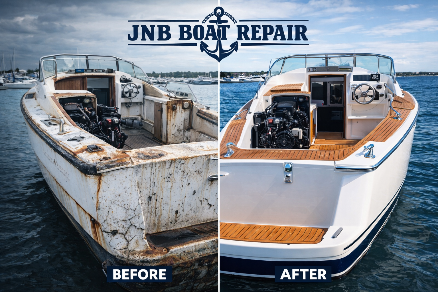 Browse photos of completed repairs, restorations, and before-and-after transformations from JNB Boat Repair LLC's real-world marine projects.